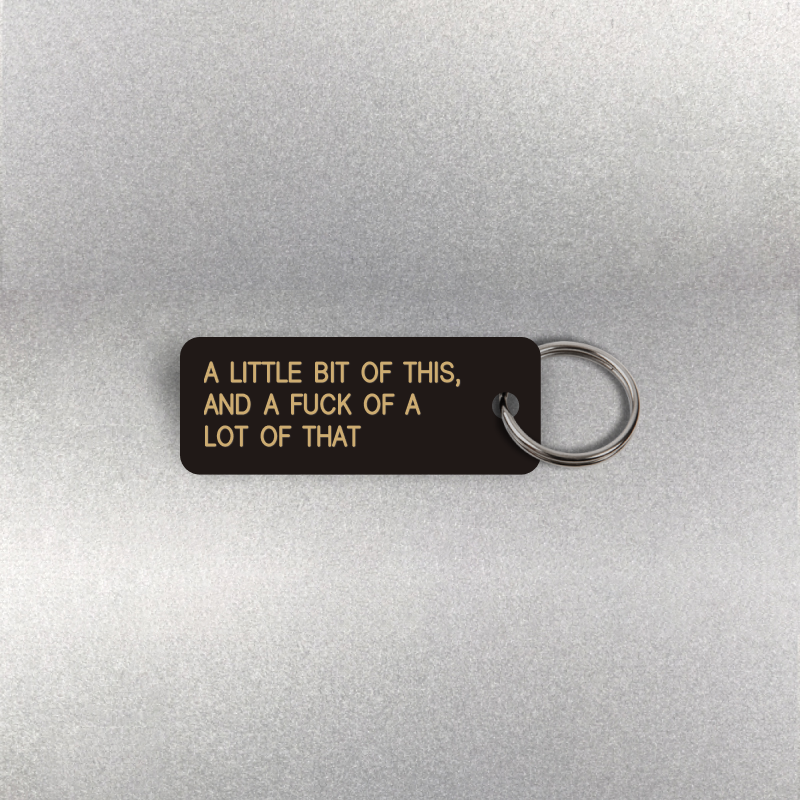 Our A LITTLE BIT OF THIS, AND A FUCK OF A LOT OF THAT Keytag is the perfect custom engraved gift for anyone who thinks, feels, and loves. Born out of a sense of humor and the sheer necessity of finding a simple Keytag that isn’t too fussy.